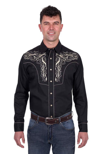 Wrangler - Mens Carlos Embroided Longsleeve Shirt - BLACK