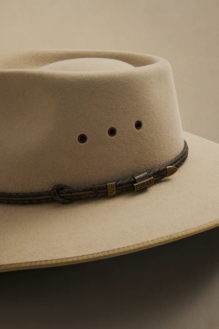 Where tradition meets resilience. The Akubra Cattleman is crafted for those who rise with the sun and never shy away from a hard day's work. Durable, stylish, and undeniably iconic. This hat is a symbol of rugged sophistication—a trusted companion for farmers, stockmen, and outdoor adventurers. Built to withstand the elements without compromising on style or functionality, the Cattleman has earned its place as a staple since 1991 for those who embrace a life on the land.