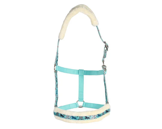 Introducing the Rancher Fleece Halter. This halter is designed with an eye catching pattern and made with quality hardware to ensure its durability. Its soft synthetic fleece lining on the nose and headpiece provides maximum comfort for your horse. This halter is perfect for showing off your horse's refined style while keeping them safe and comfortable. Make sure your horse stands out with the Rancher Fleece Halter!