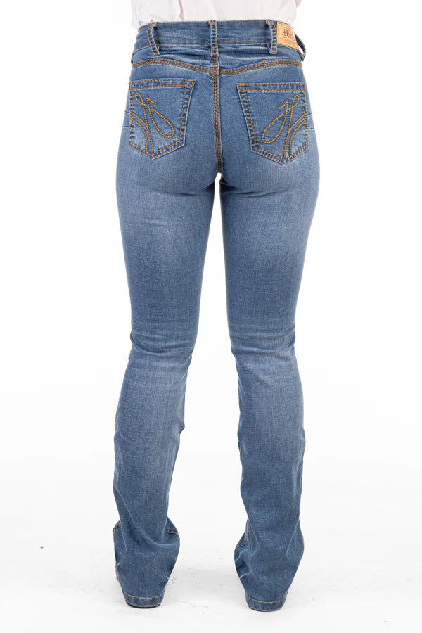 The newest addition to the H&H denim collection, our ultra high rise jeans are our most flattering fit yet. Offered in a new size range of 24 to 38" waist, and in a 35" and 38" leg length. They feature a slim fit through the hip and thigh, a high front and back rise a no gap waist and the perfect boot cut. These jeans are a 'wear all day' feel and allow you to bend and move with ease.