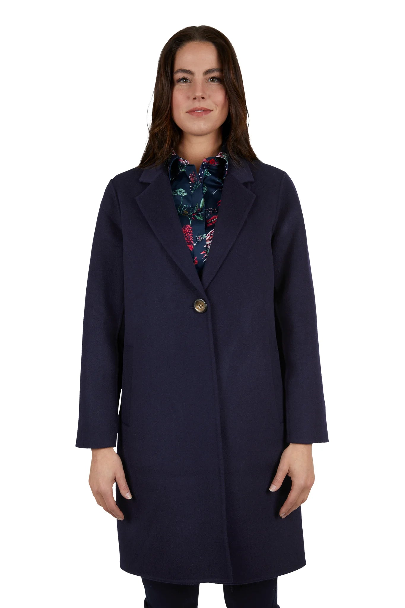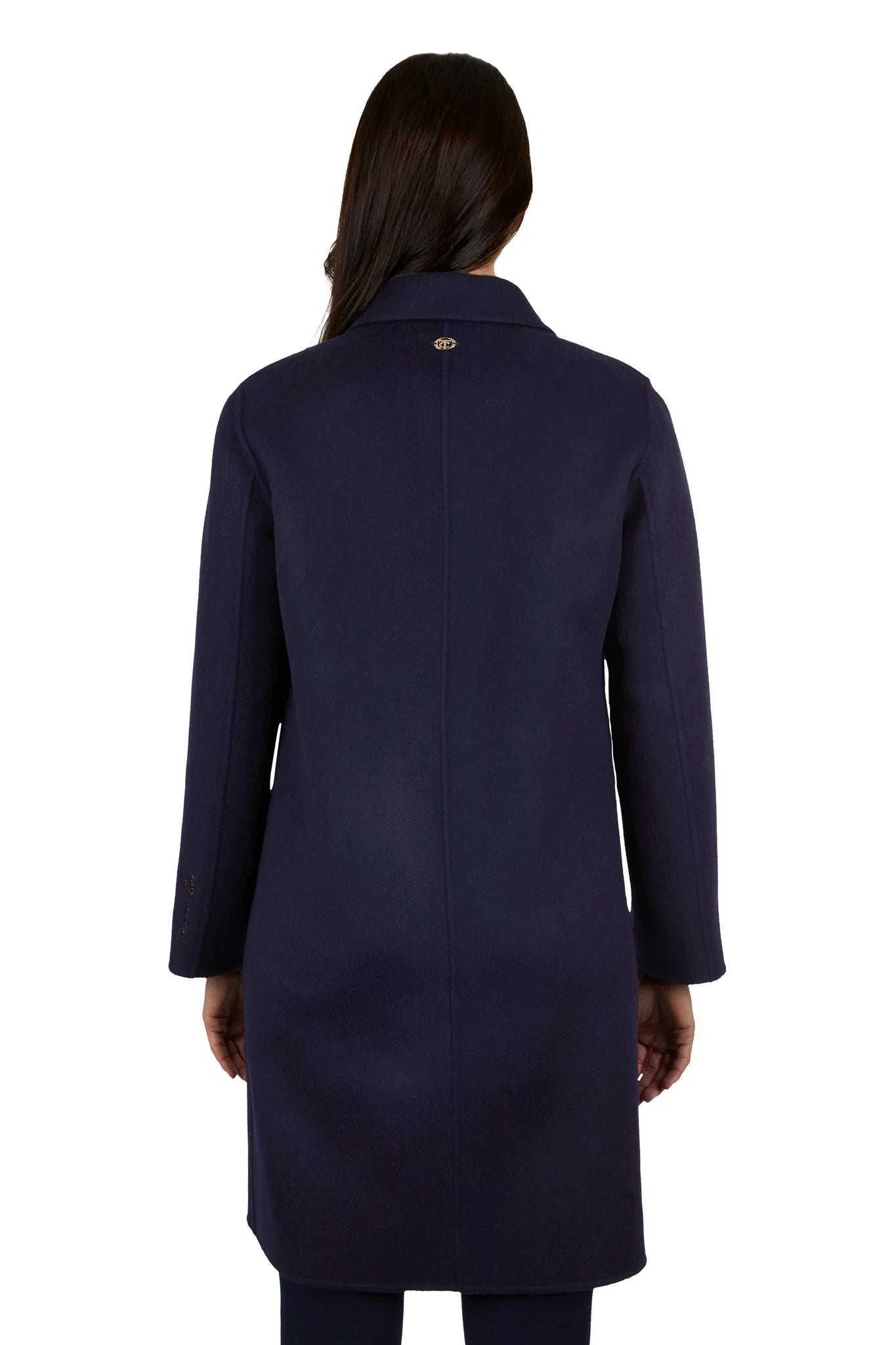 Discover the perfect blend of style and comfort with Thomas Cook Women's Leicester Coat. This longer line coat features a button opening and welt pockets, with the added touch of script embroidery on the sleeve hem. 70% Polyester / 30% Wool.