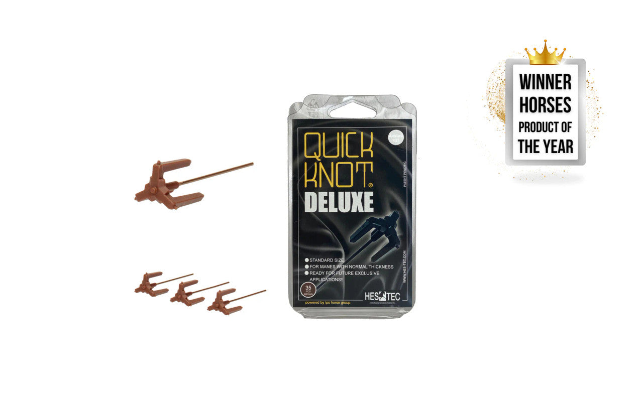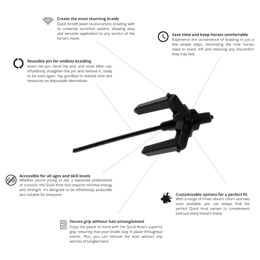 Introducing the new Quick Knot Deluxe® – the ultimate mane clip for flawless plaits. Its patented three-armed design ensures a secure and reusable hold, saving you time and effort.