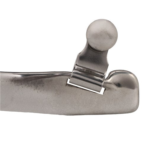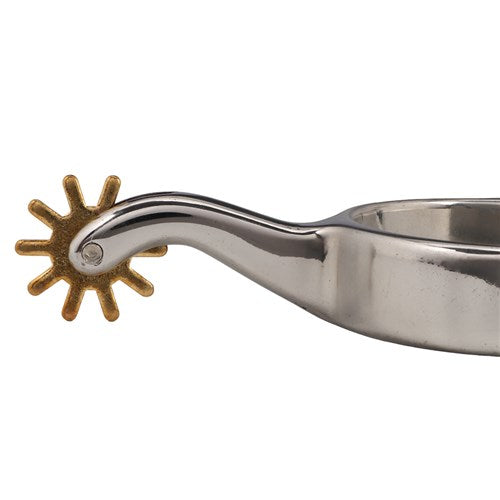 • Secure Fit:The unique "lip" design ensures a snug fit on various boot styles. • Durable Construction:Made with high quality Stainless Steel for long lasting use. • Optimal Performance:The 2" shank provides excellent leverage and control. • Comfortable Wear:Designed for all day comfort while working on the farm or at drafts. • Stylish Design:A classic look for drafters, station hands etc.