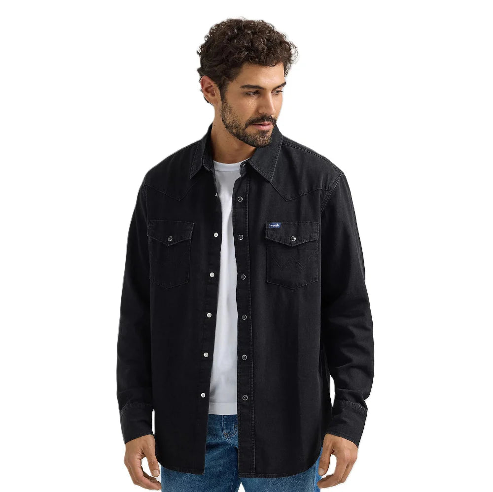 When you need to layer up, the Men's Wrangler® Classic Denim Western Snap Shirt has you covered. It’s crafted from cotton for comfort and lasting quality. And the classic fit will seem as if it was made just for you. This long-sleeve collared shirt comes with all the heritage-inspired details you know and love—one point front and back yokes, snap flap chest pockets with the ‘W’ stitching, a snap closure, and a classic fit that’s easy to dress up or down.
